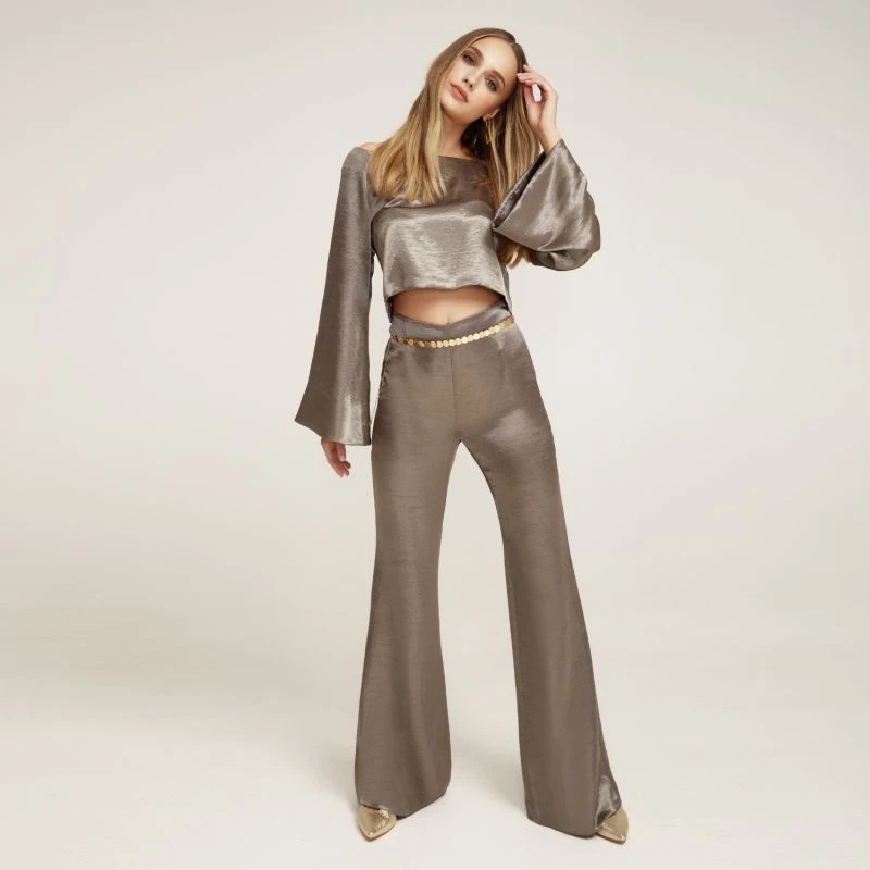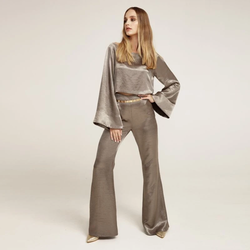 The ultra-wide high waisted trousers are elongating, whilst the fluid viscose drapes beautifully over curves. Perfect transitions seamlessly from everyday life to evening soirées.