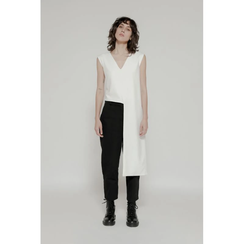 Details: Short-sleeved. Long left side. Genderless. The longer side is mid-calf length. V-neckline