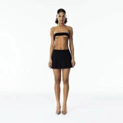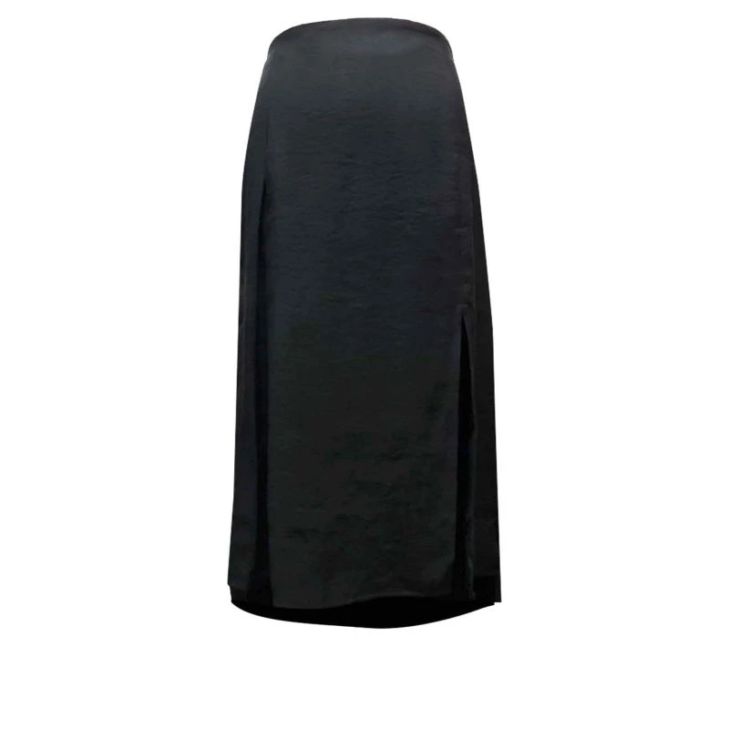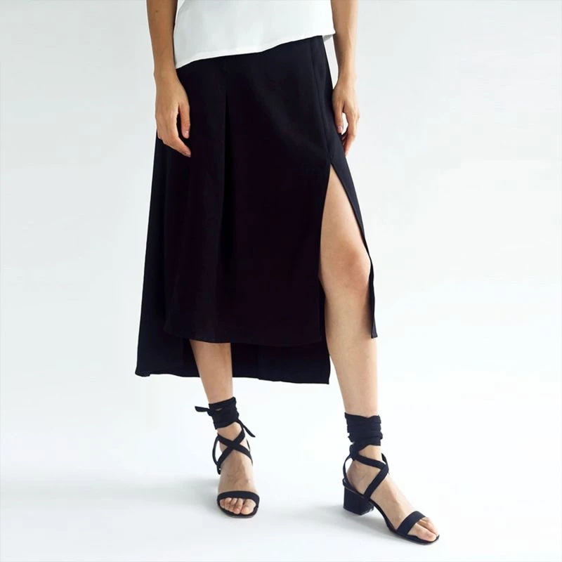 Bamboo Hi-lo Hemline Midi Skirt With Side Slit In Black