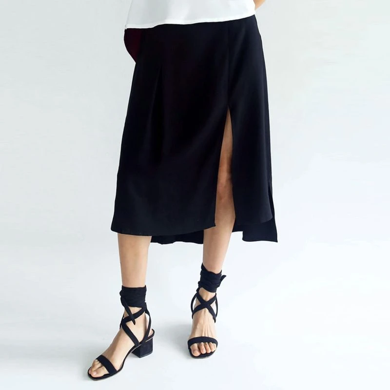 This Salient Label bamboo skirt is made from smooth bamboo fabric and has a slit that shows off your left thigh. Ground yours with chunky combat boots and simple tee or tank. Only left with 1 size. Please kindly check exact measurement for best fit.