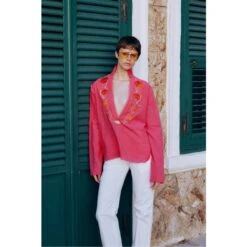 Oversized boyfriend cut Billie shirt is the ultimate style piece. Turn heads in this beautiful hand painted print by tucking it into jeans or wearing it casually cool with our Franklin maxi skirt.