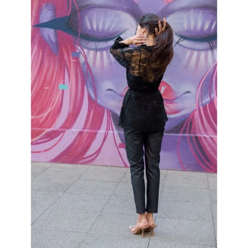 The blouse can be included in an elegant outfit, but also in an everyday one, suitable for those days at the office. It can also be worn over a blouse, a turtleneck or a cotton shirt.