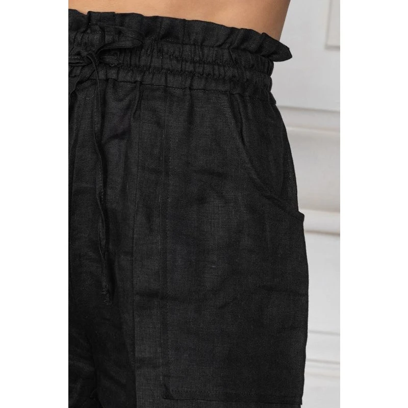 Black Linen Shorts With Pockets