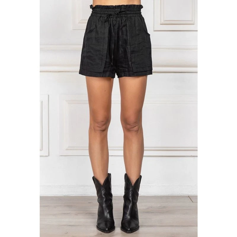 These black linen shorts are perfect for any warm-weather occasion. Crafted from breathable linen fabric, they feature two discreet pockets for a touch of convenience. Enjoy the comfort and the sleek style they bring to your wardrobe.
