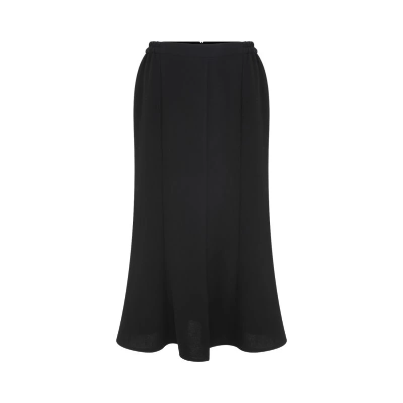 Black midi skirt has a comfortable, soft touch. This daily chic item has side lastic waistband for better fitting