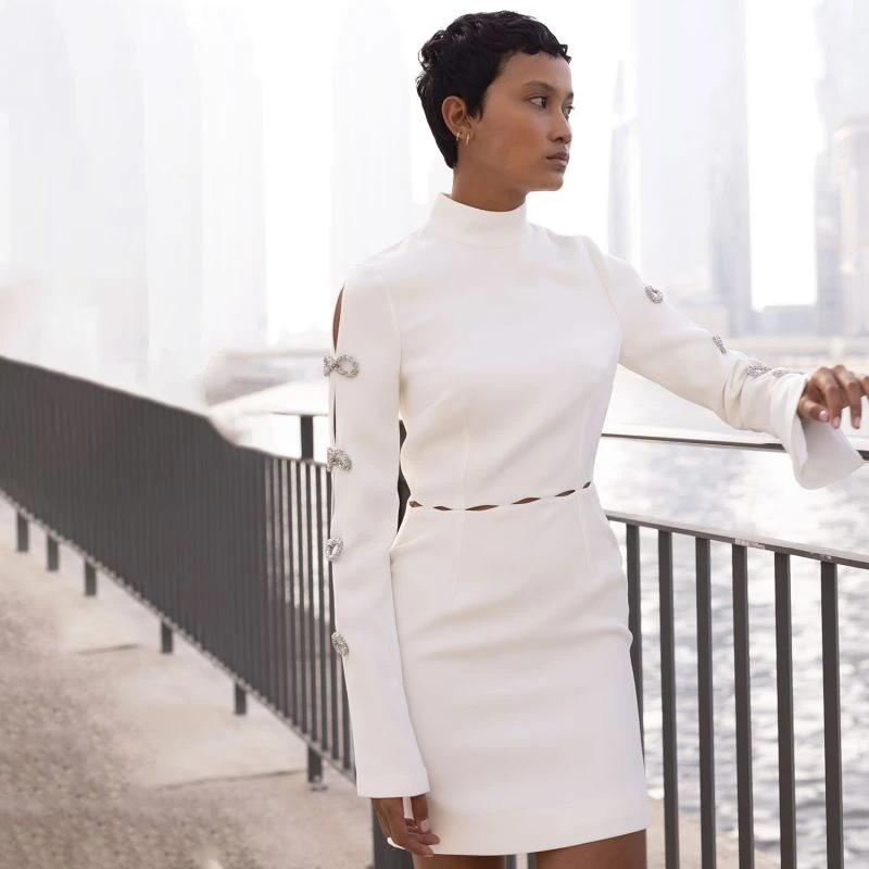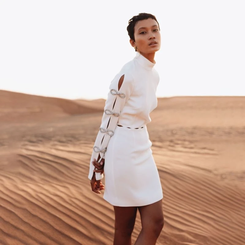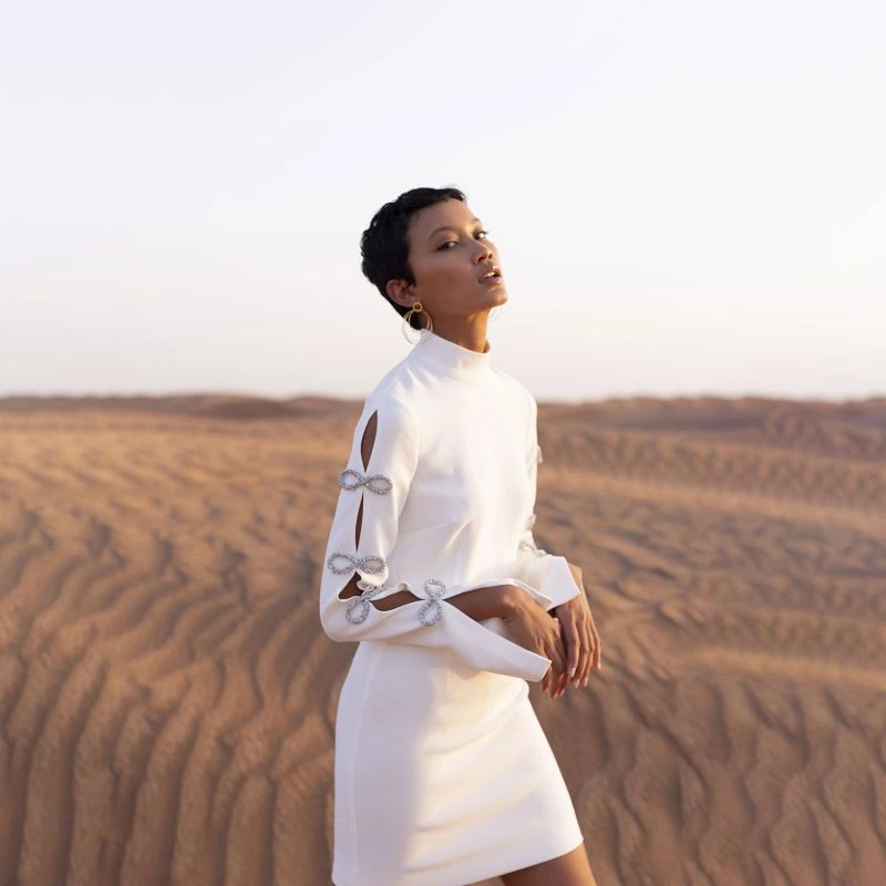 The dress is made exclusively in our atelier, meaning that it is not produced or manufactured anywhere else. This creates a level of exclusivity and uniqueness for the dress, as it is only available from our specific location. This production process also allows us to maintain a high level of quality control, ensuring that each dress meets our standards.