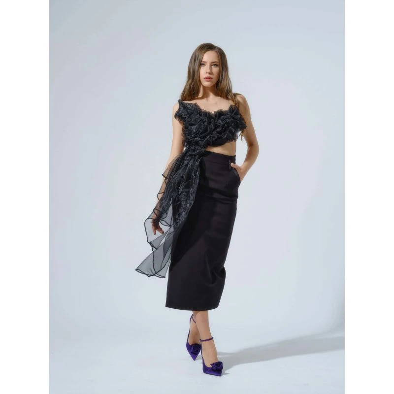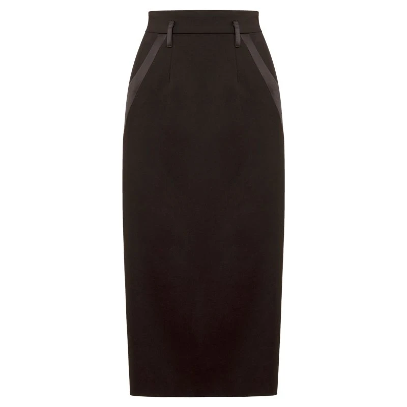 Primed for day-to-night sophistication, this fully lined design is confected in a flattering stretch cotton blend fabric, lending an ultra-sleek finish to the classic silhouette. It has a high waist, handy pockets detailed with luxe satin, and an open slit in the back for walking ease.