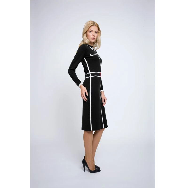 This AW season we have given the classic knitted dress a different twist with all-knitted jacquard detail. The classic silhouette makes this piece a great all-rounder that can take you from office to evening. Style for the weekend with a pair of knee length boots and an oversized tote.