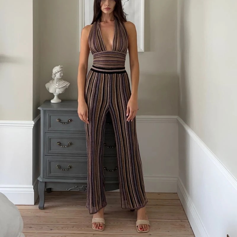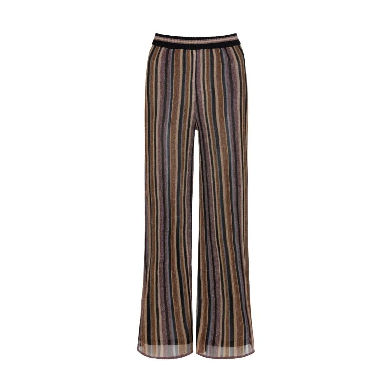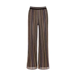 Wide, leg trousers crafted from vertical knit stipe with shimmering metallic thread and finished with ribbed knit, elasticated waistband for a comfortable fit.
