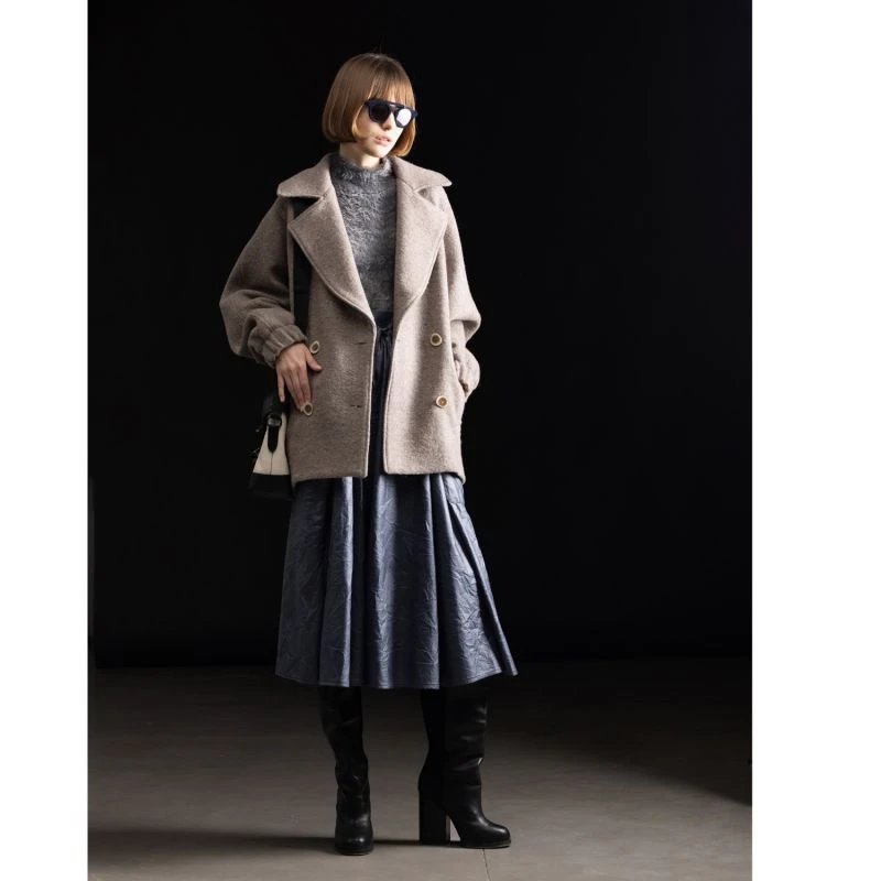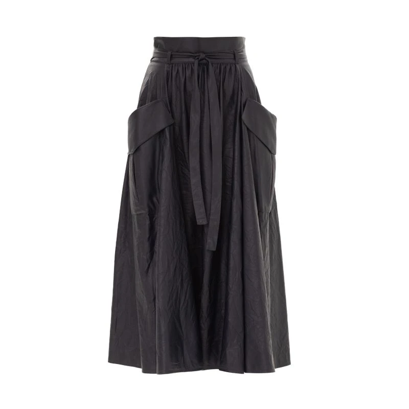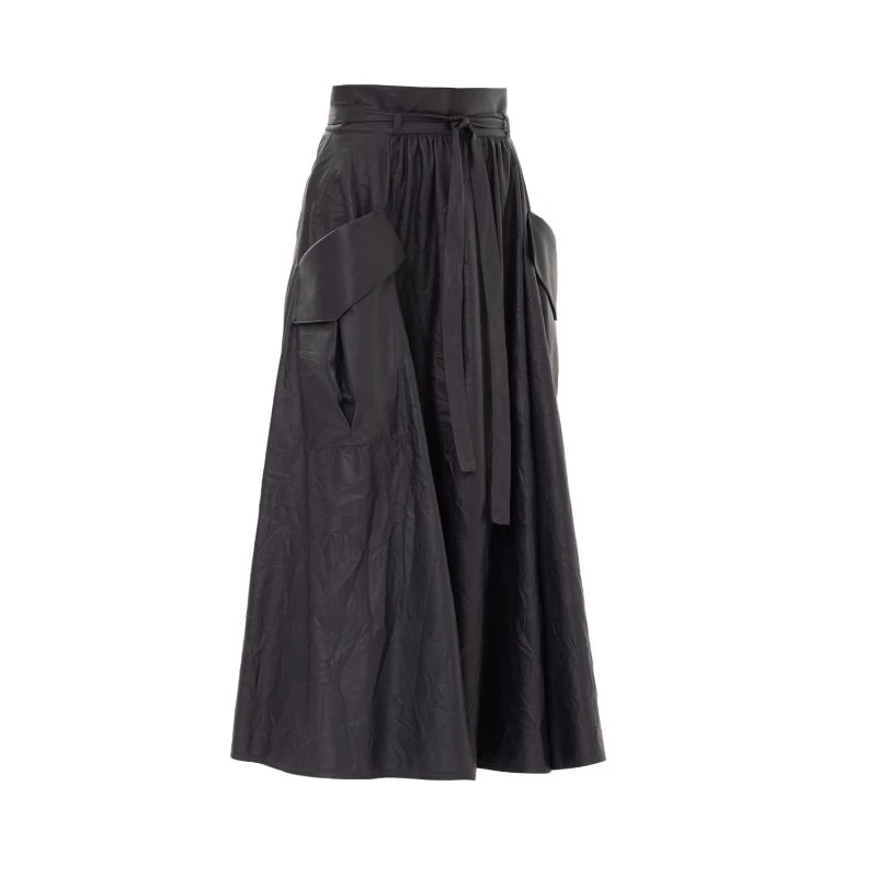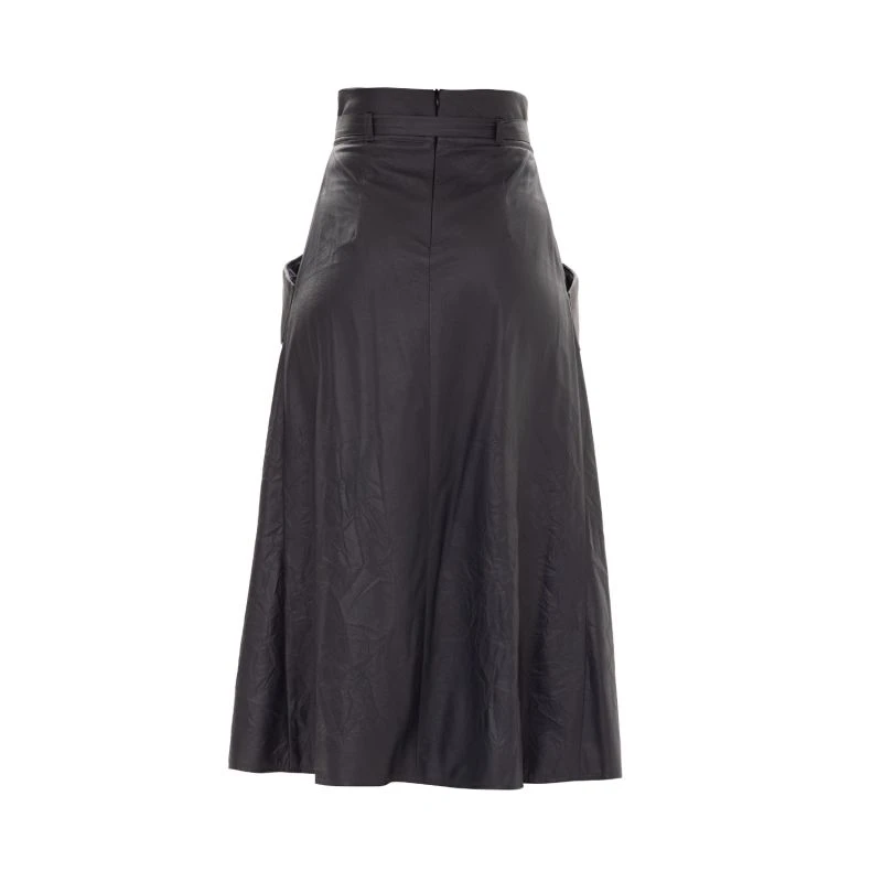 The skirt is made in our perforated faux leather. Women skirt designed in a-line style with belt, concealed back zip and patch pockets on the sides. Great for everyday looks with comfortable shoes.