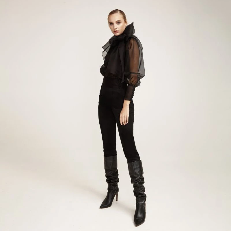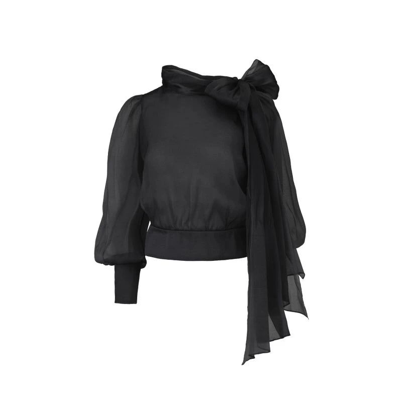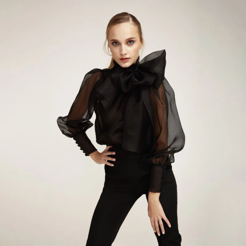 Impeccable and feminine, this flattering blouse is crafted from fine silk organza with a scarf tie-neck that can be styled to the front or nape of the neck in a plethora of ways.