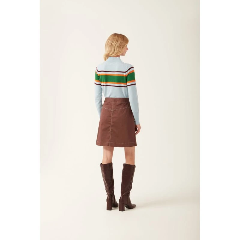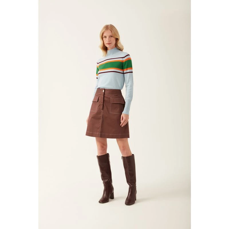 A versatile, BCI Cotton short skirt. With 2 patch pockets and seam detailing this cute skirt is just above the knee in length. Slightly A-line shape
