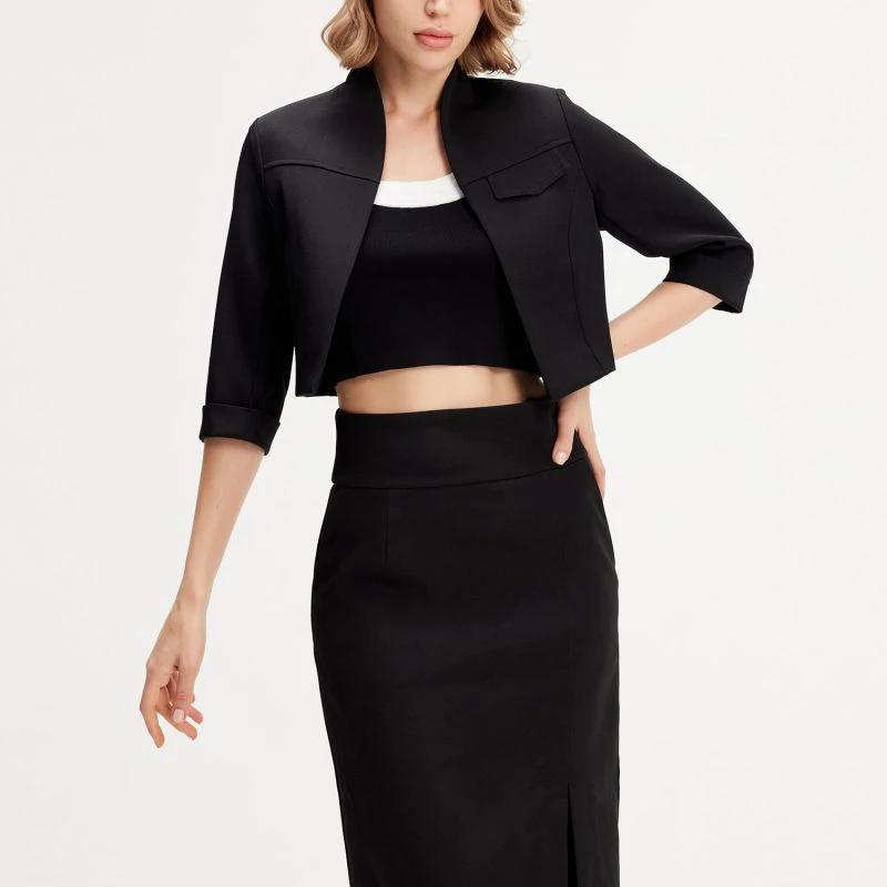 A timeless cut with a high waist, highlighted by a wide belt. Left front slit and side pockets. An attractive and elegant piece for the office to pair with a caraco, a blazer or our ” Minimalist crop jacket”.