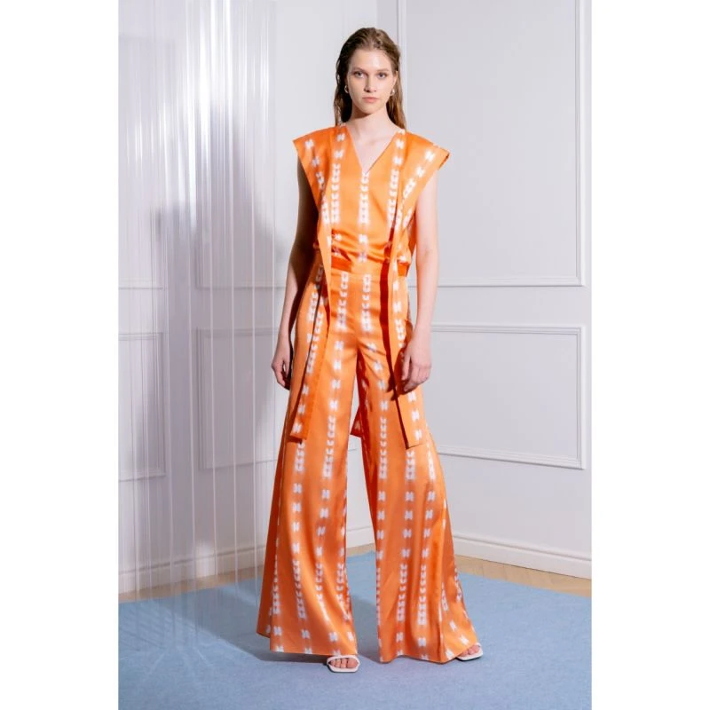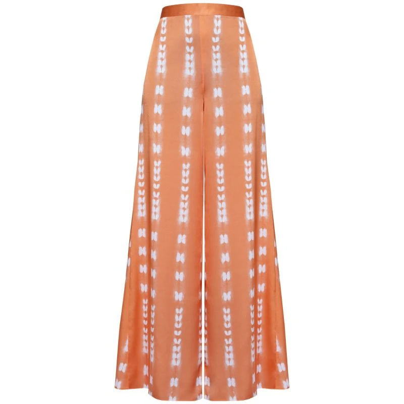 Add a juicy splash of colour to your summertime wardrobe edit with these flared printed trousers. They have a flattering high-rise and wide-leg silhouette and are crafted from flowy recycled polyester.
