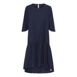 This bohemian cut dress is so pretty and feminine and full of lovely details. The dress has three-quarter length sleeves, extra length at the back and is sewn in a beautiful midnight blue color. The dress is perfect for summer, but can easily be incorporated into both fall and spring wardrobes.