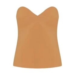 Fitted form with bra pads has zip at the back. Corset has No lycra and made of Crepe fabric. Can be styled with jeans.