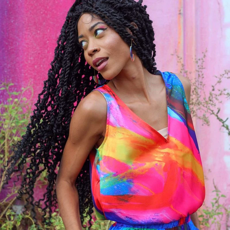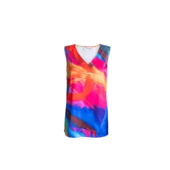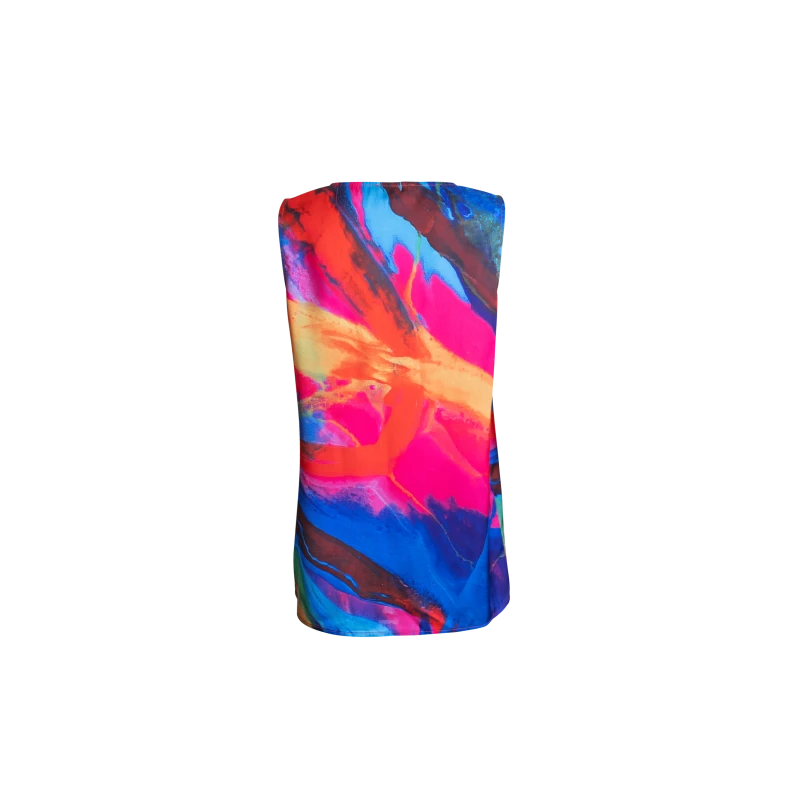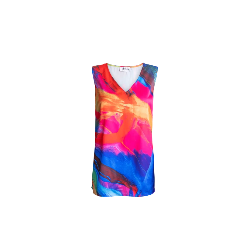 A classic sleeveless blouse nice enough to put under a blazer for work or wear on its own. Feminine vneck line and silky smooth fabric might leave you thinking you’re in your pajamas.