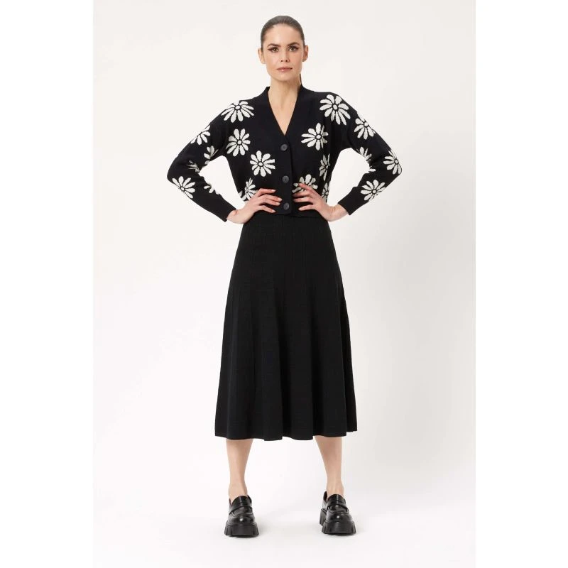Elegant and comfortable Knitted Ribbed Midi Skirt from James Lakeland should be your ultimate wardrobe must haves this season. It’s crafted in midi length, invisible ribbed detail all around and elasticated waist. Pair it with heels for an evening look or little boots for a more casual look.