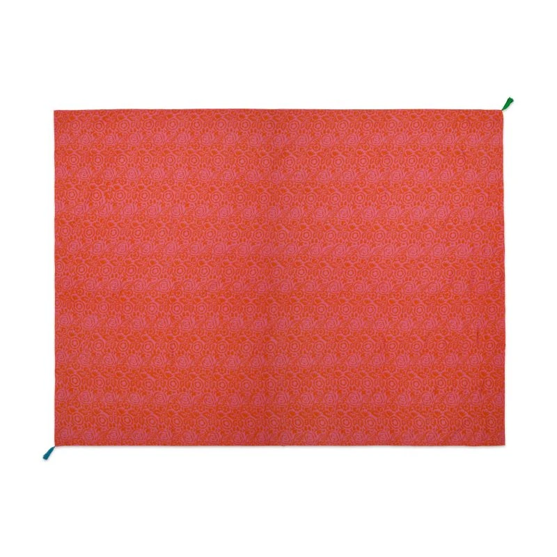 Lightweight Organic Cotton Satin Beach Cover-Up Sarong With Tassels In Orange And Pink Rose Block Print