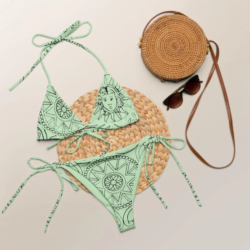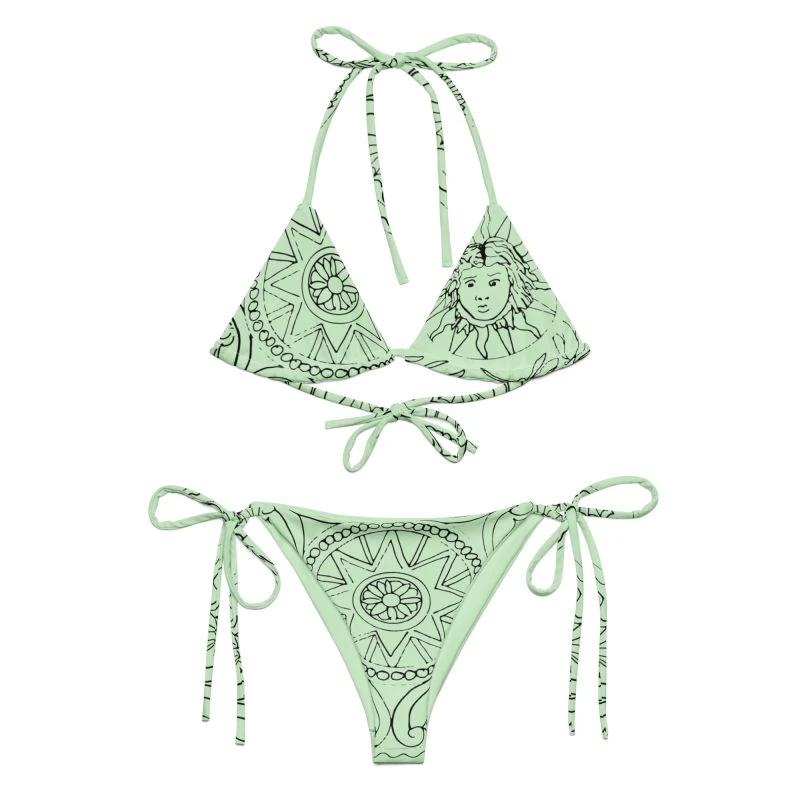 Embrace the captivating beauty of the Medusa Sea Medallion print on our String Bikini in Mint Green. By choosing this bikini, you showcase your unique sense of style while contributing to a more sustainable future. Wear it proudly, knowing that you’re making a conscious choice that reflects your values.