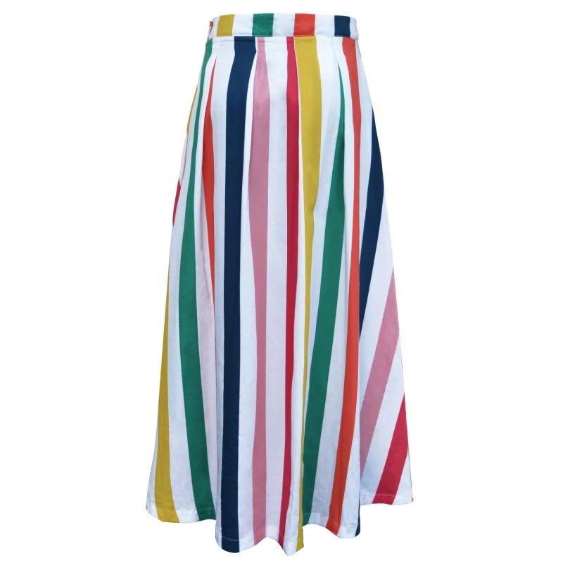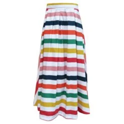 Maxi skirt printed with digital technique on high quality, soft satin cotton fabric. Front and back design are different so you can wear the skirt multiple ways. It’s multicolor stripes will brighten your day!