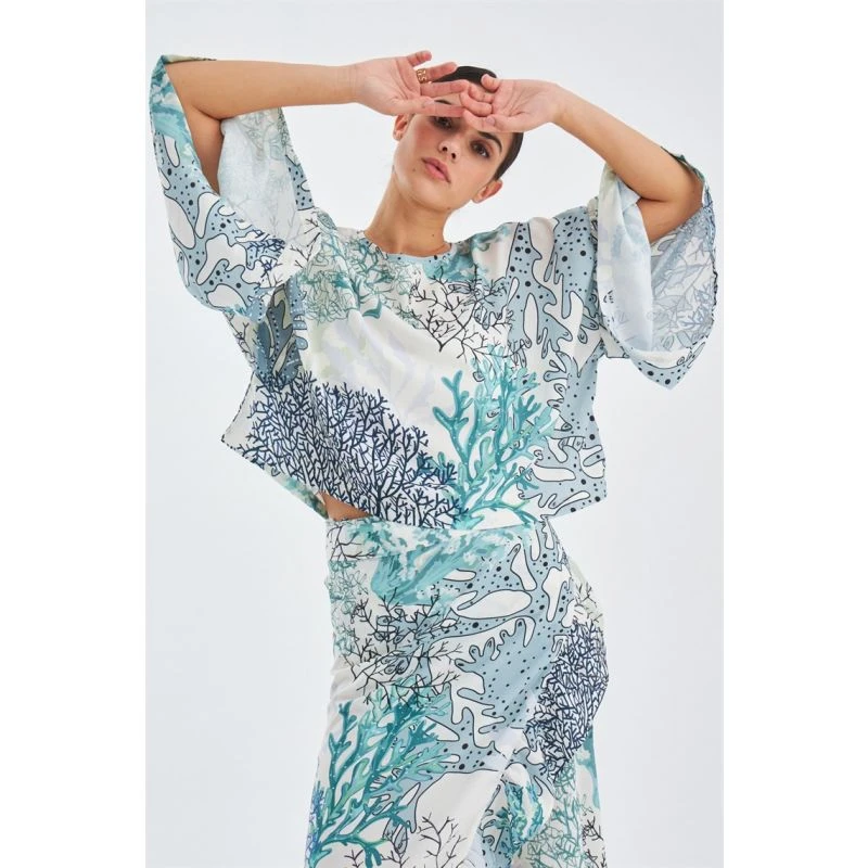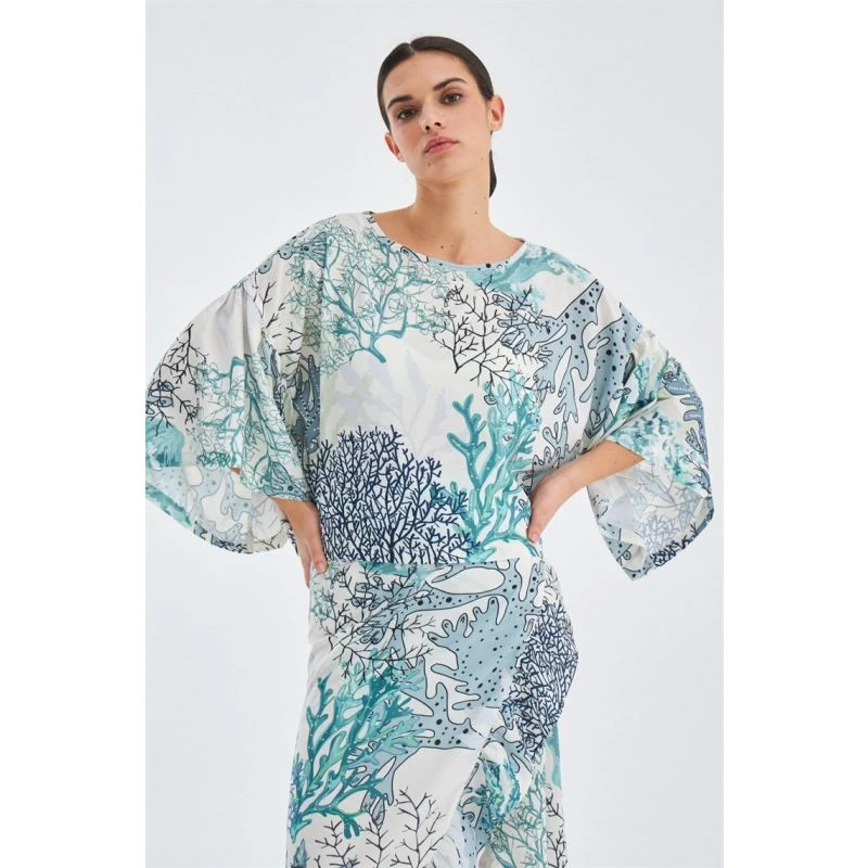 The Nila Blouse features graceful kimono sleeves that add a touch of sophistication to your ensemble. With a loose and relaxed fit, it provides the perfect balance between style and comfort, making it an ideal choice for various occasions.