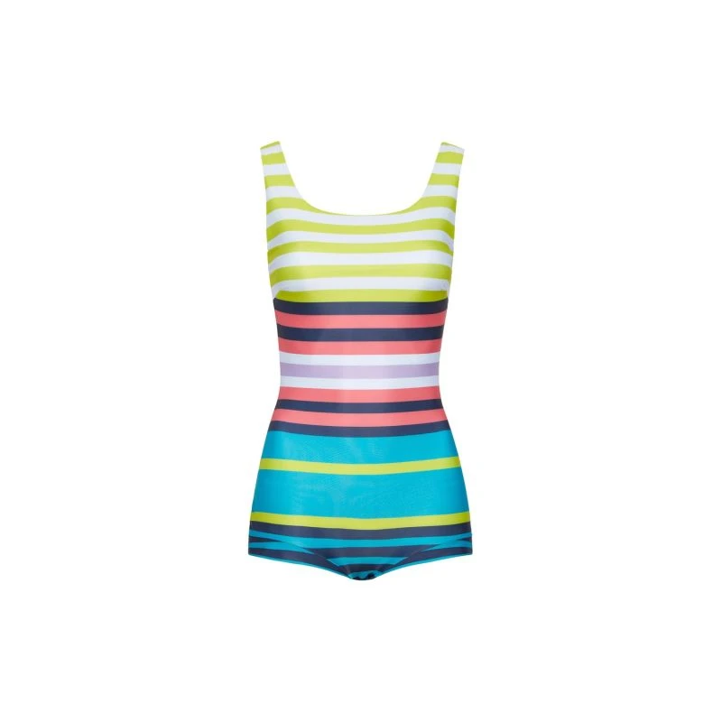 Seeking to minimise waste with this design, regenerated materials were used to create a beautifully made swimming costume that you will treasure for generations. NINO is cut from purified ECONYL which is an infinitely recyclable nylon made from fabric scraps and fishing nets that would otherwise end up in our oceans or landfill. Drawing inspiration from the 60s, this swimsuit has a square neckline and low square back and the vibrant, retro striped print gives it a distinct cool, sporty feel.