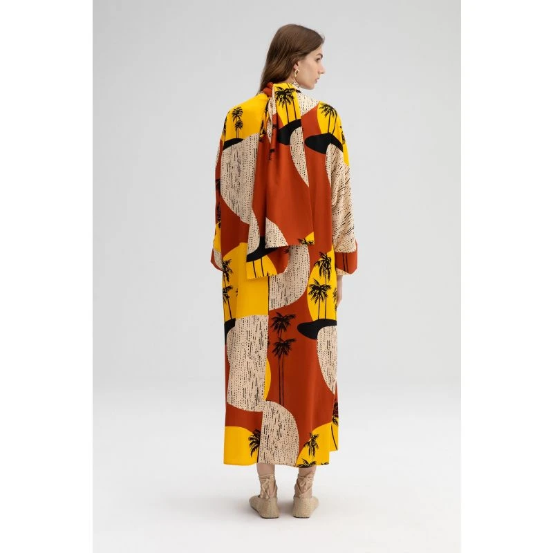 The patterned dress with neckband, a chic and fashionable garment that combines a flattering silhouette with eye-catching patterns and a stylish neckband detail. This dress is designed to make a statement and elevate your style to new heights.