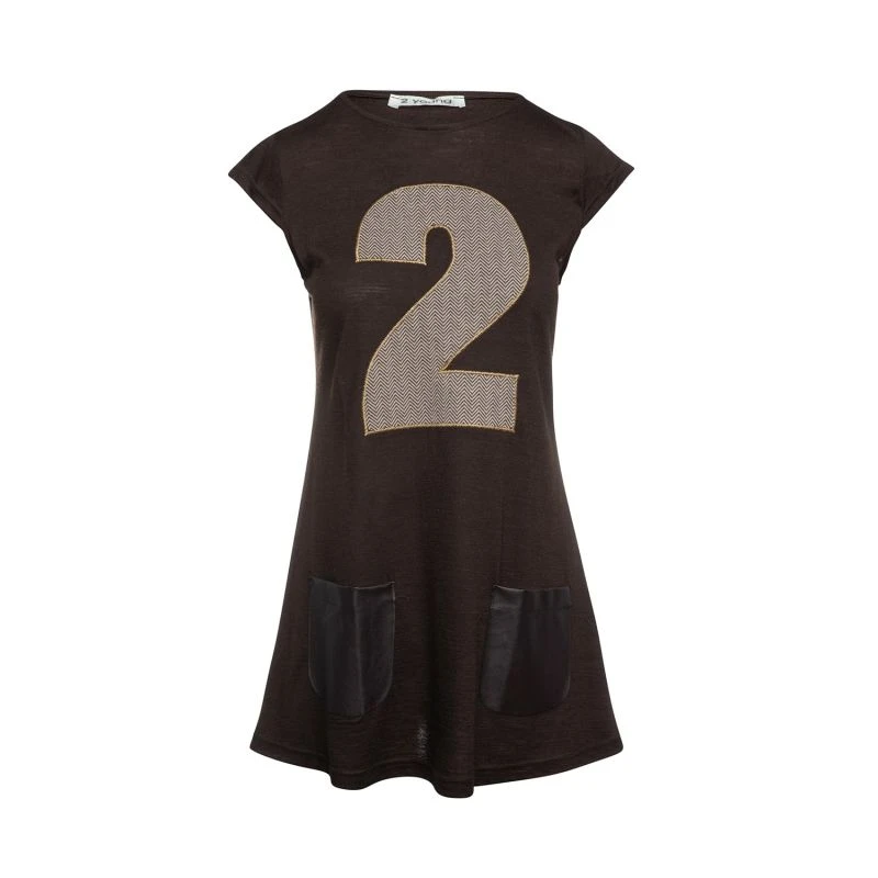 We’re simply loving it and we know you will too! This cosy-chic lightweight sweater dress will add an extra dimension to your look this season. The sassy 2 logo in contrast fabric is outlined in striking gold stitching while the leather effect front pockets add a luxe accent. Wear with tights and sporty footwear for an on trend street look. Scoop neck. Cap sleeves.