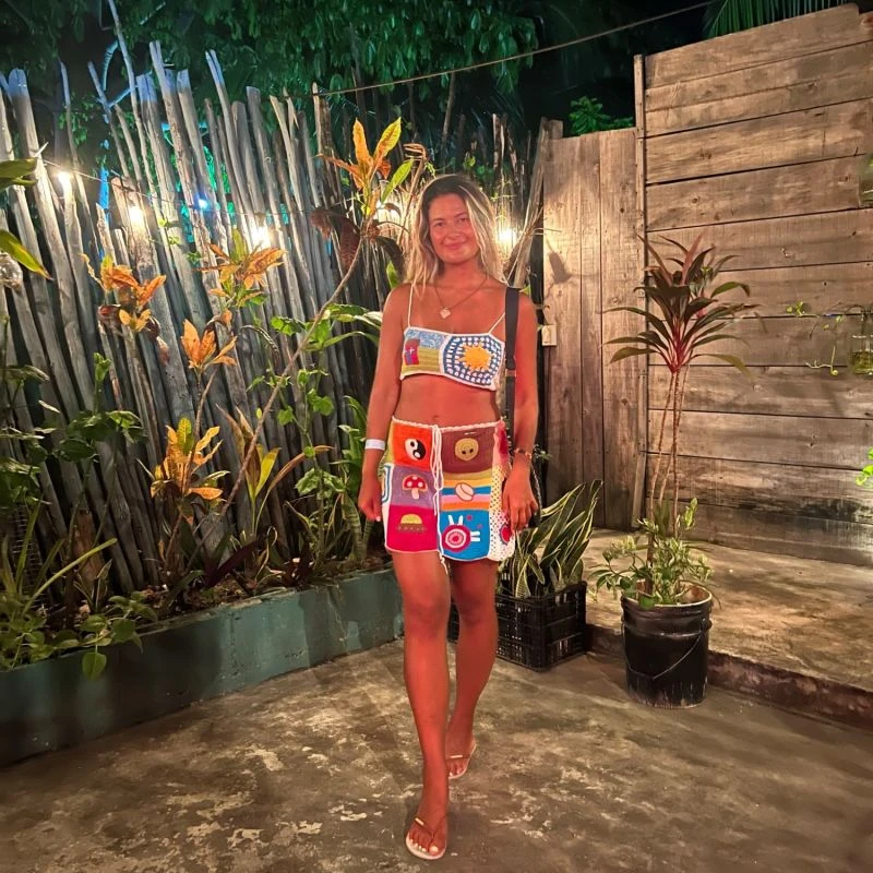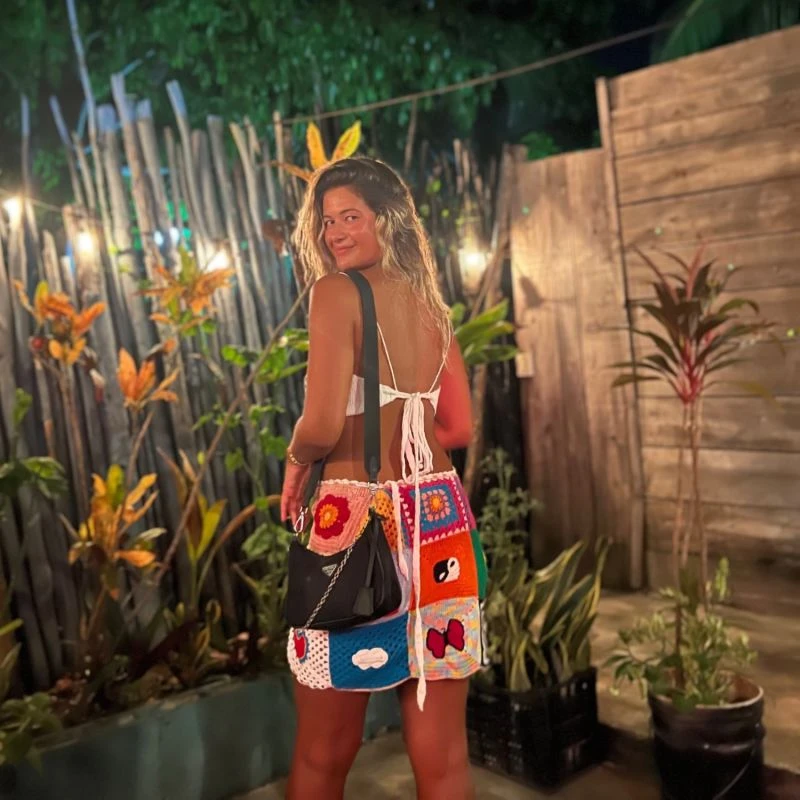 This Poppy Set consists of a top and medium lenght skirt handmade crochet in Brazil, predominantly white with fun applications. This set is unique and exclusive!