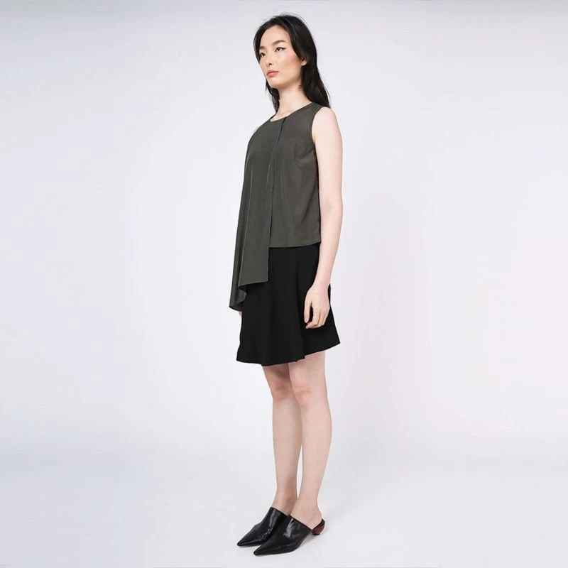 Raelyn Front Draped Panel Viscose Cupro Top In Dark Olivine