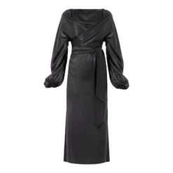 The Riley dress is made from soft satin in textured animal jacquard that drapes beautifully on the body. Designed in a flattering wrap silhouette, it has generous side splits and an adjustable wrap belt to cinch in your waist. The twisted balloon sleeves gives this dress that added wow factor. Wear yours with sexy heels or chunky boots.