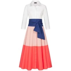 Rosé-Salmon Colorblock Shirt Dress With Tie Belt