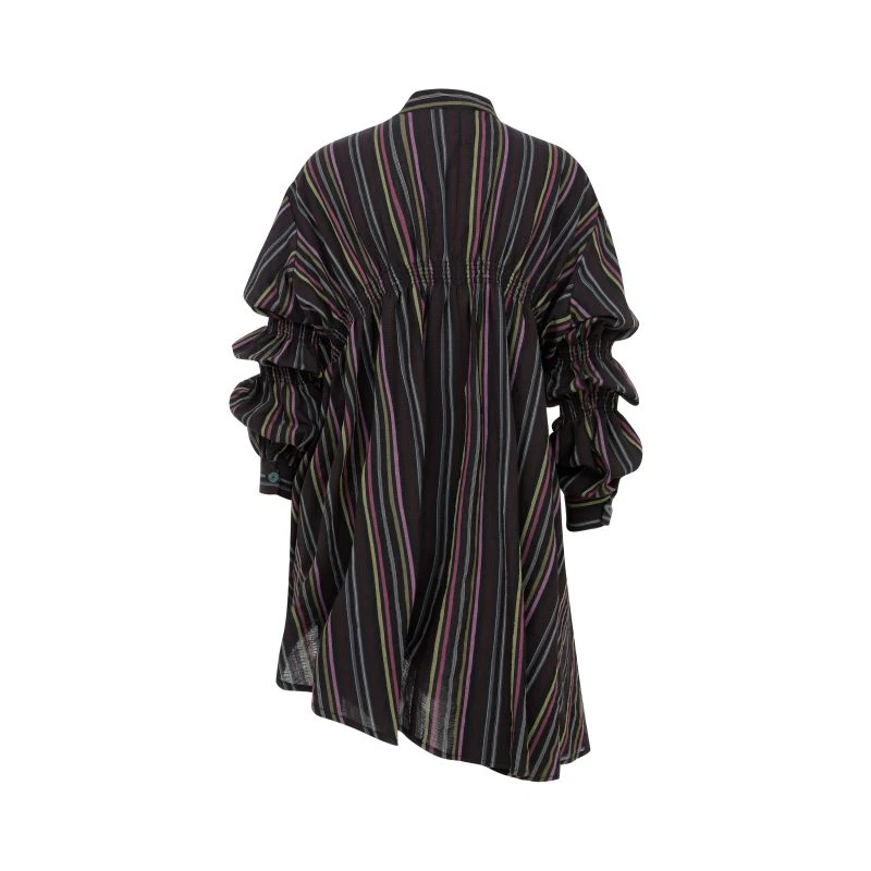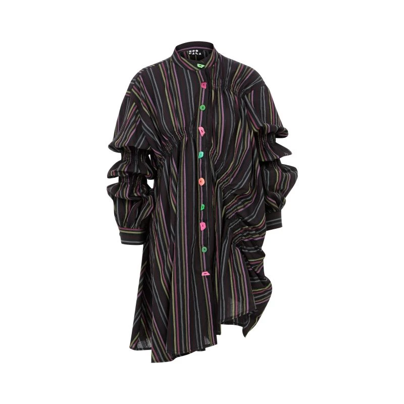Catwalk your days as a piece of art! Sarah Shirt Dress has tiered layer, puff flare long sleeves. This gathered asymmetric organic cotton shirt dress can be worn both sleeves slightly up or down according to how you feel. Wear it as a dress or style it with your favourite pants or shorts as a long shirt. Due to it’s flexible cut, your selected size will always cover a size bigger and smaller with ease. What makes this design unique is the colourful handmade button details. Easily can be adapted from a day look to a fancy night out with your girlfriends.