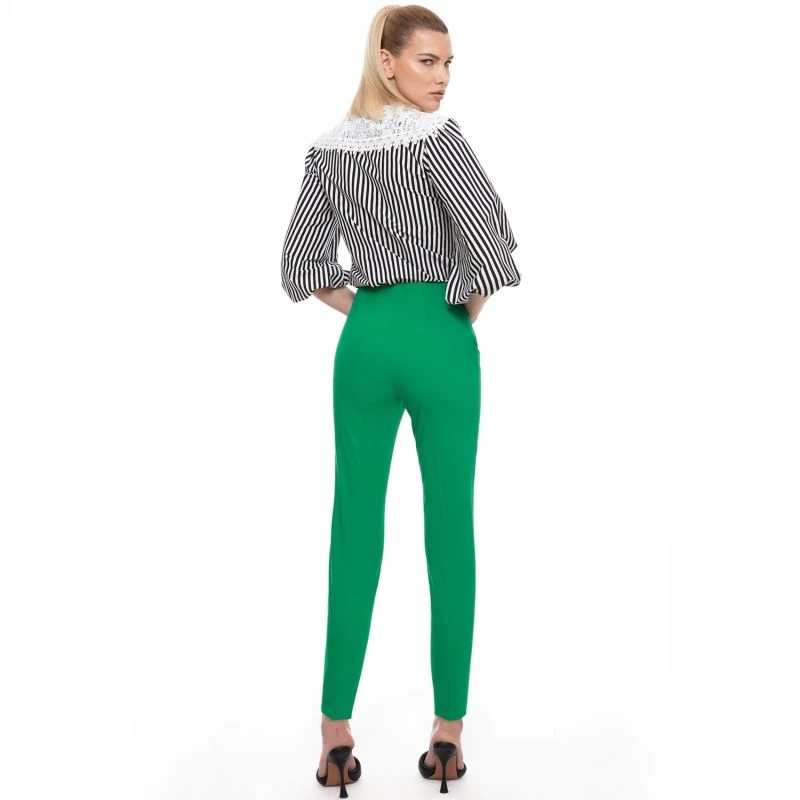 The product has slim cut and cotton fabric. They have a medium rise and side pockets. Available in various brands.