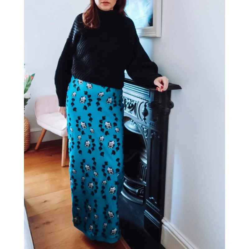 The definition of effortless, the Teal Floral Maxi Jersey Skirt is the wardrobe hero you won’t want to be without. Cut from a mid-weight cotton jersey this simply pulls on. Flattering in all the right places, the wide tailored waistband can be folded down for versatility, shortening or lengthening the skirt. Gently falling away at the hips volume is added in for ease of movement.