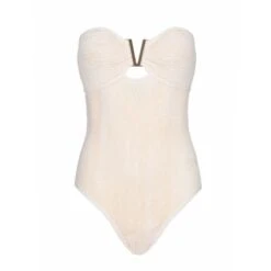 You will love the front cutout and the V gold accessory for a glamour touch with super soft fabric and adjustable tie-back for more comfort and support.