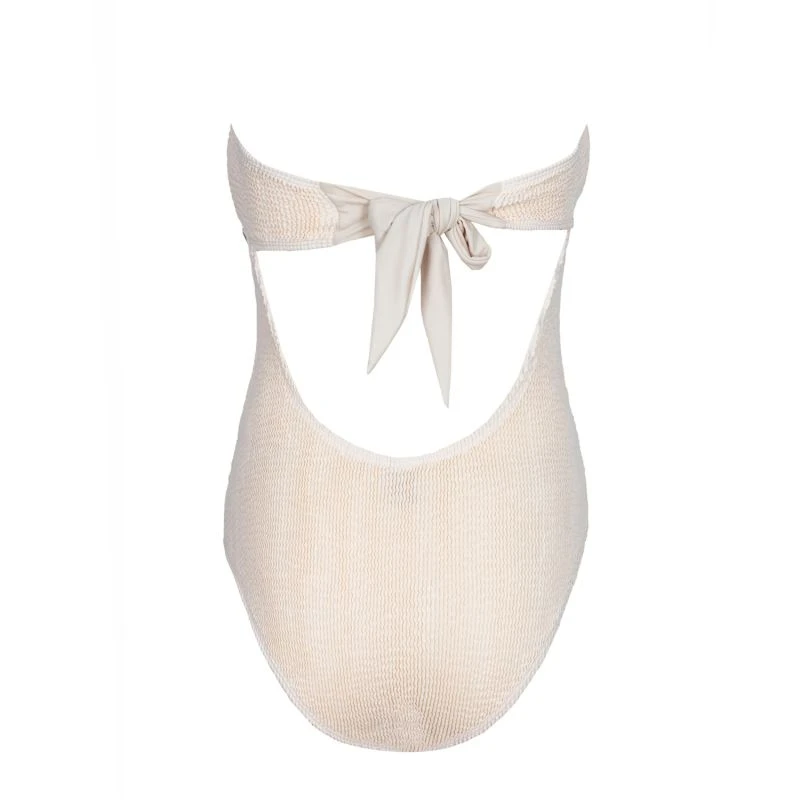 This is the most universally flattering swimsuit out there! Our TRACY one piece in cream crinkle is making a huge splash that fits all sizes from XS to XL!