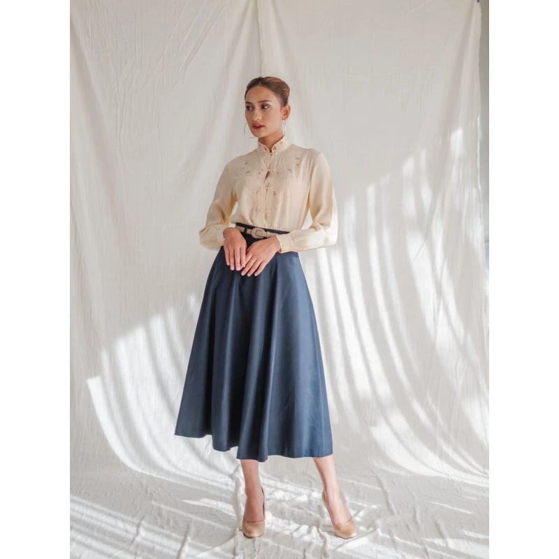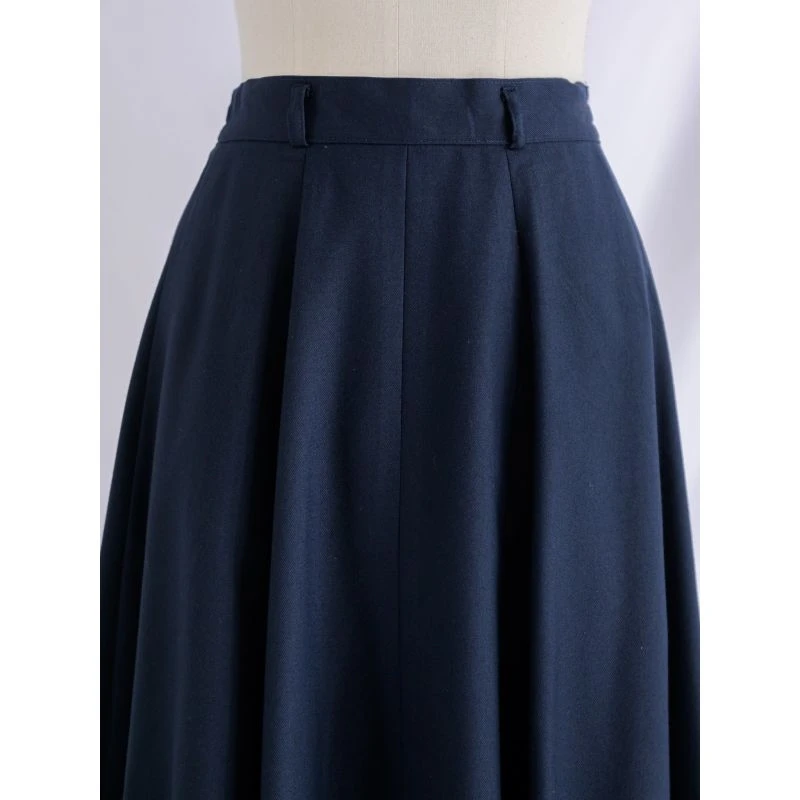 Unveil the perfect blend of style and sustainability with our Sugar Cream vintage navy blue cotton maxi skirt. Impeccably made, this skirt offers both comfort and elegance with its elasticated waist and zip fastening. Elevate your fashion game with this unique and exquisite addition.”