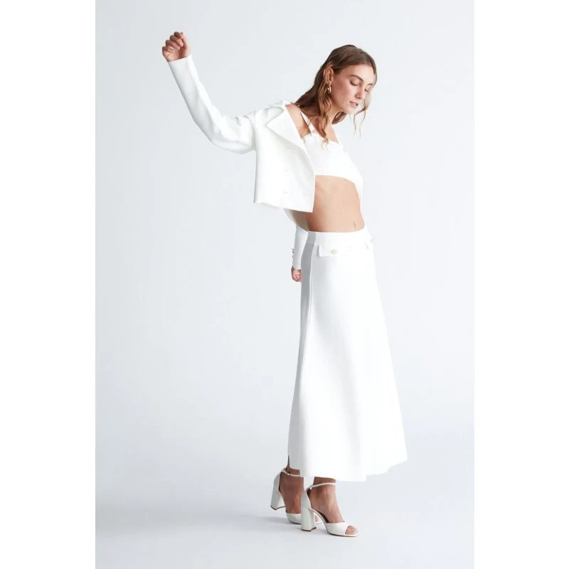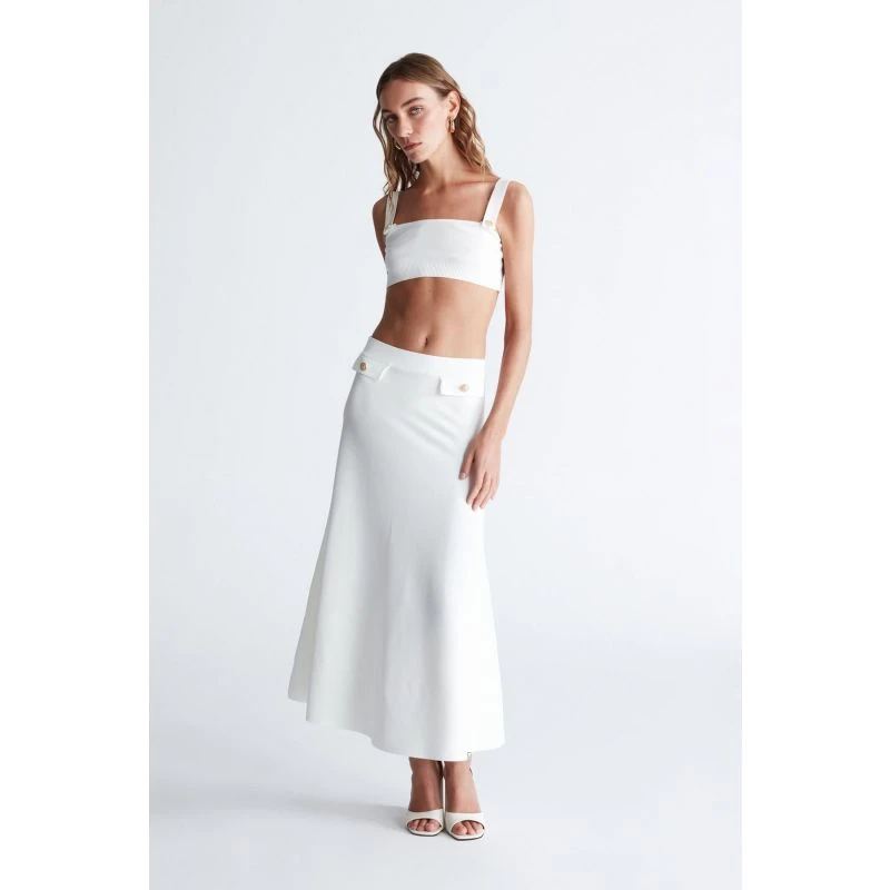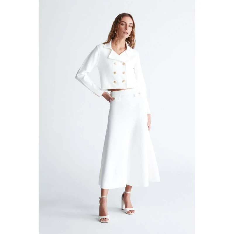Introducing our Vivien Midi Flared Knit Skirt in Ecru – a chic and stylish essential. With its flattering flared design and elegant button detailing, this skirt adds a touch of sophistication to your look. Embrace timeless elegance with our Vivien Midi Flared Knit Skirt.