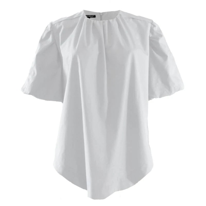 White Puff Sleeve Gathered Top